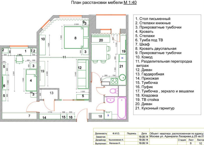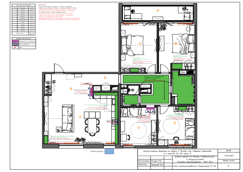 - Сделаем план зонирования помещений и расстановки мебели, визуализируем при необходимости