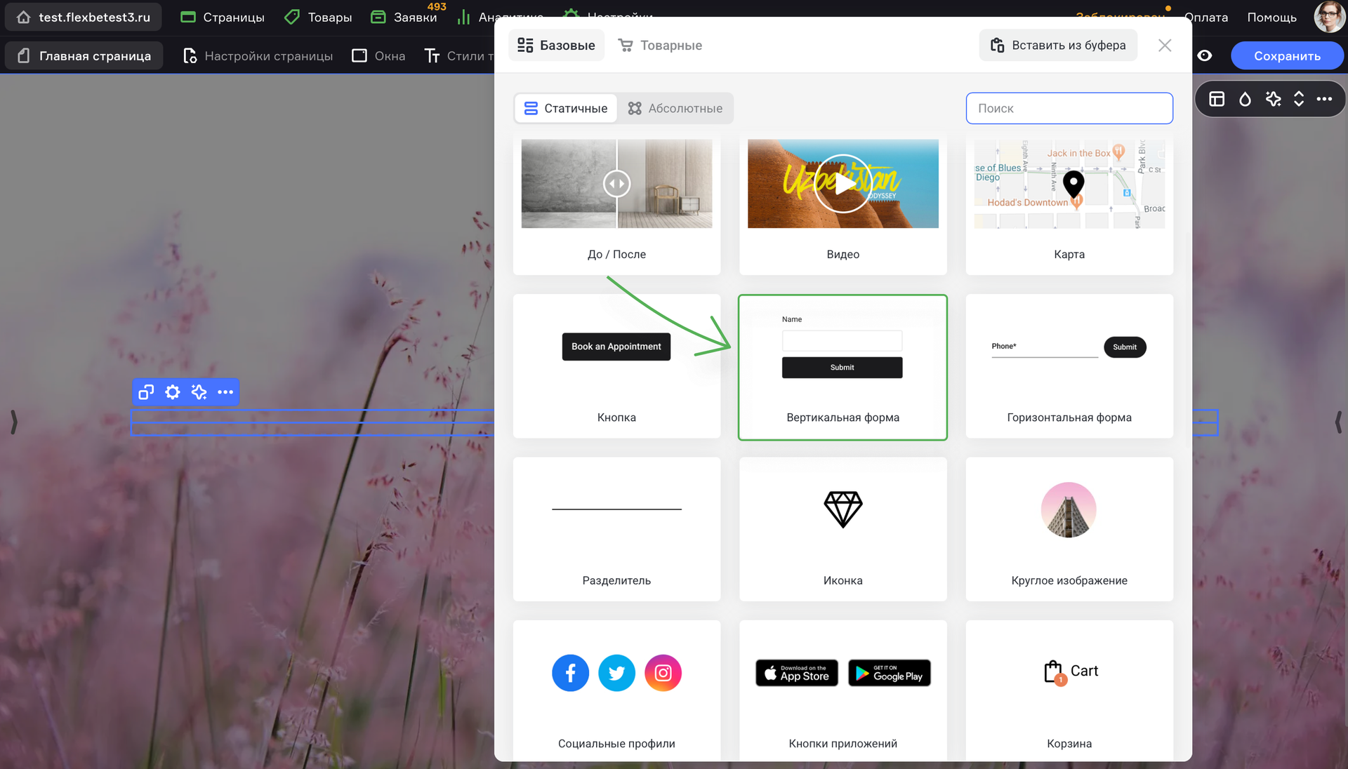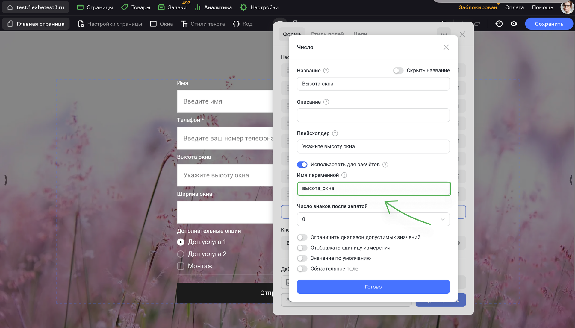 Чтобы добавить калькулятор полей на Flexbe, выполните шаги: